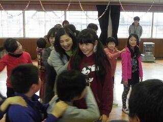 その後、ボランティアの方々と子供たちで、一緒に「じゃんけん列車」で遊びました。