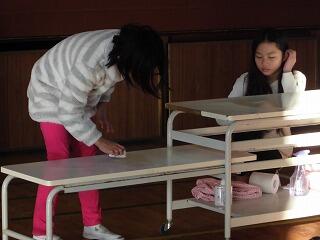 今日は、朝のあかまっ子タイムで、給食委員会が中心となって、正しい給食配膳の仕方や食べ方のマナーを確認しました。