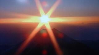 左は富士山上空からの御来光、右は栃木市運動公園から見た初日の出