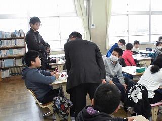 本日午前中、第3回の学校評議員会を開きました。今年度最後の評議員会になります。まず、1年生の表現活動を参観していただきました。次に、来年度から始まるコミュニティ・スクールについて、市教委の木村先生より説明をいただき、理解を深めることができました。その後、学校評価や地域の実情などについてご意見をいただきました。1年間学校に対して温かく見守っていただき、また、貴重なご意見をいただきありがとうございました。