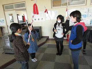 今日(1月19日(木)の昼休みに、他の学年と仲良く遊びました。ペアになった学年は、昨日一緒に給食を食べた学年で、1年と6年、2年と4年。3年と5年です。昨日、給食を食べながら、今日の昼休みに遊ぶ内容を決めました。あいにくの強風の中でしたが、「子どもは風の子」、寒風をものともせず、元気に走り回っていました。
