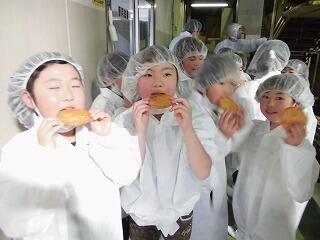 3年生が社会科の学習としてせんべい工場の「金吾堂製菓」に見学に行きました。せんべいができるまでの生産工程や生産量、作る人の工夫や苦労などを学んできました。工場内は、暑く(特に焼成段階)作業をする人は、真冬だというのに半袖で作業をしていました。真夏だと60度近くなることもあるそうです。