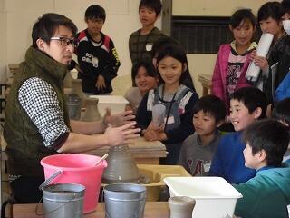 2月16日(木)に、4年生が社会の校外学習で益子焼に行きました。子供たちいとって、初めてのろくろ体験でした。上に伸ばしたり、形を整えたりすることが見ているのとは大違いでとても難しい作業でした。