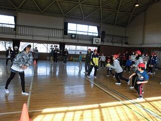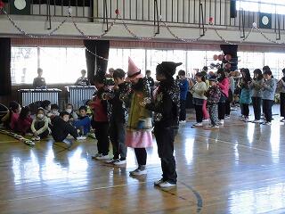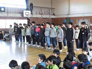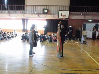 後半は、体育館で、各学年の出し物や感謝の気持ちを6年生に披露しました。