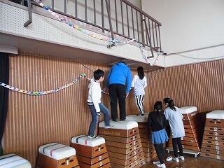 前半は、清掃班ごとに各ゲーム会場を4年生がリードしながらまわりました。5年生と職員が準備したゲームを楽しみました。