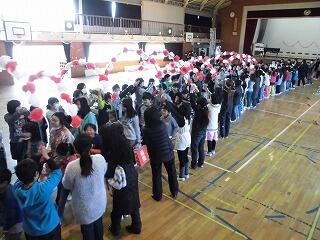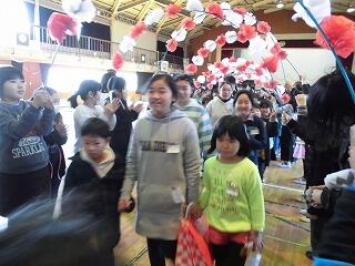 いよいよ見送りです。4年生の花のアーチを1年生と2年生にエスコートされながら退場しました。