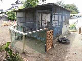 15日(土)にオス側にも扉を付けてもらいました。出入りのときに外に出てしまうので、メス側同様柵で囲いました。