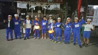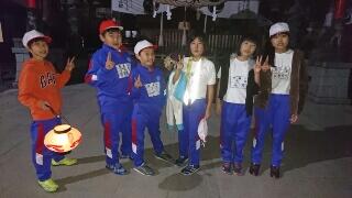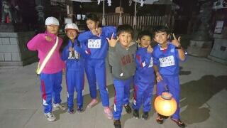 ナイトハイキング。途中太平山神社で記念撮影。さっきから悲鳴が聞こえてきます。