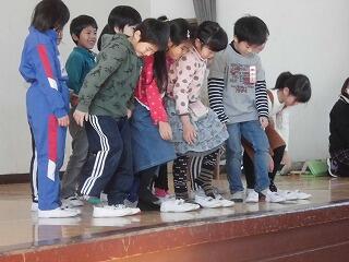 今日のあかまっ子タイムに表現活動を行いました。2年生がインフルエンザによる学年休業中だったので、全校で集まることはせず、保護者と学校運営協議会委員と一部の教師の前での発表となりました。