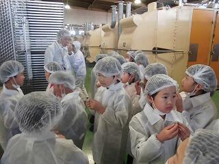 3年生が社会科の「工場ではたらく人びとの仕事」の学習として、金吾堂せんべいの見学に行きました。せんべいができるまでの生産工程や、おいしく安全につくるための工夫や苦労・努力などを学んできました。