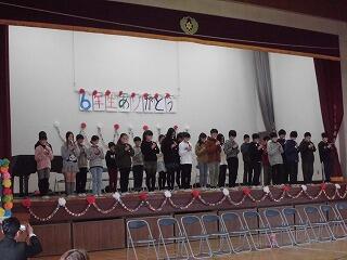 第二部は「ありがとう6年生の会」ということで、各学年から、6年生に感謝の気持ちを込めて出し物をしました。また、それに応えるように6年生から在校生へ合奏と合唱を行いました。どの学年も感謝の気持ちが込められていて、最後にコメントした校長先生は涙ぐんでいました。