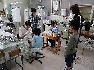 本日は耳鼻科健診です。耳・鼻・のどをチェックしていただきました。みんなよい子で健診を受けていました。健診の時は、いつも阿部先生が補助に入ってくださいます。6年生の検診が終わるまで、ずっと立ったままでの補助です。阿部先生いつも有り難うございます。