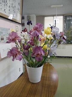 花壇に色とりどりのお花が咲き、季節の移り変わりを感じることができます。そして、地域の方がおうちで咲いたお花をいつも届けてくださいます。今回は、ジャーマンアイリスがいっぱい届きました。昇降口に、主任技能員さんが素敵に生けてくれました。図書事務さんも、かわいい掲示物を季節に合わせて作ってくれます。まさに「チーム赤麻」として、あかまっ子のために頑張ってくださっています。ご来校の際は、是非、ご覧になってください。