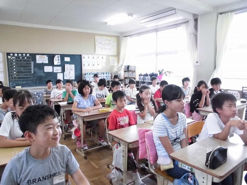 発表者に体を向け、真剣に聴いている様子が分かります。また、黒板に絵を書いて説明するお友達をみんな、一生懸命見つめています。