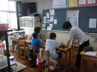 保健室では、フッ化物のぶくぶくうがい用コ ップを洗うお手伝いをしている子もいました。