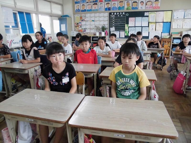 本日、二回目のフッ化物洗口です。むし歯予防のために毎週木曜日に実施しています。