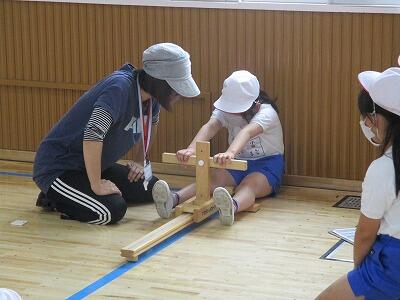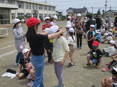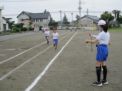 新体力テストを実施 1年生を迎える会と同じように昨年は実施できなかった新体力テストですが、こちらも今年は実施することができました。ただ、コロナの影響で、顔が近い位置になり、尚且つマスクを着けての実施が必要となってしまうため、「上体起こし」だけは実施できませんでした。また、20mシャトルランは密を避けるため通常体育館で行っていましたが、今年は屋外での実施となりました。そのほかの種目は全て実施しましたが、そのうちの5種目を5月20日(木)、全校一斉に行いました。5、6年生が先生方の補助をしながら、頑張って測定や記録をしてくれました。雨で予定の日からは2日遅れとなりましたが、怪我もなく、無事に終了することができました。前日の雨でぬかった校庭の水をスポンジで吸い取ったり、朝早くからラインを引き直したりと、先生方にもとても頑張ってもらいました。