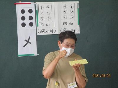 6月3日(木)、3,4校時に4年生が点字体験を行いました。講師は藤岡点友会「てんとうむし」の5名の方々です。総合的な学習の福祉学習「みんなにやさしく」の一環です。