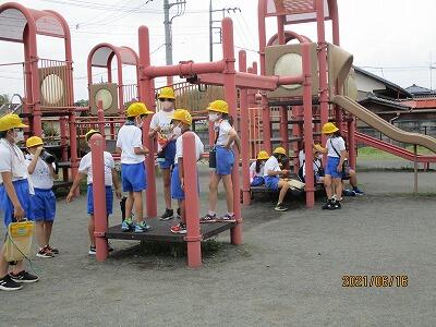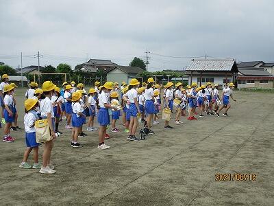 第1回目の防災訓練、及び引き渡し訓練を実施                         6月2日(水)、今年度第1回目の防災訓練、及び引き渡し訓練を行いました。防災訓練では、1回目ということで、地震時の火災からの避難の仕方、避難経路の確認、集合の仕方など基本的な行動の訓練をしました。訓練の意味をよく考えて臨んでくれた児童が多かったようです。全校児童が3分以内に避難することができました。今後、年3~4回の訓練はもちろん、日常指導を通して「自分の命は自分で守る」という意識を育てていきたいと思います。