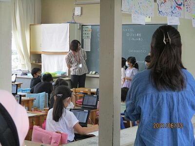 2回目の授業参観と「ハッピー子育て講座」                           6月23日(水)、今年度2回目の授業参観、そして「ハッピー子育て講座」が実施されました。密を避けるため、3校時と5校時の授業を公開し、そのどちらかを参観していただく形にさせていただきました。残念ながら今回も廊下からご覧いただく形になってしまいましたが、今回は教室と廊下の間の窓を全て外して、掲示物も参観の邪魔にならないよう、各学年、工夫して掲示や展示をしました。また、授業内容も色々な教科の授業をご覧いただけるよう、1回目とは違う教科の授業になるようにしました。