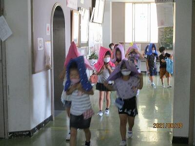 2回目の防災訓練を実施                                    6月28日(月)、今年度2回目となる防災訓練を行いました。今回は竜巻接近時の避難の訓練です。竜巻の恐ろしさや、避難の仕方を事前に学習してから、それぞれの学年の避難場所への避難を行いました。実際の避難訓練は10分程度でしたが、児童は竜巻接近時の避難の仕方を、教職員は避難のさせ方や報告の仕方を訓練することができました。特に竜巻からの避難時専用の避難場所を実際に確認できたことは有意義だったと思います。