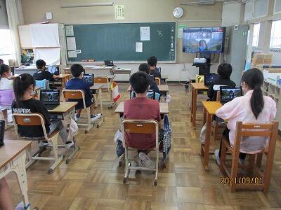 2学期が始まりました。新型コロナウィルスの感染拡大がなかなか収まらず、栃木県に緊急事態宣言が出されている中での2学期開始となりましたが、保護者の皆様のご協力のお陰で本校では夏休み中も感染の報告がなく、無事に2学期をスタートさせることができました。始業式は1学期の終業式に続いて、リモートで行いましたが、今回は大型のテレビに加え、初めて児童一人一人が自分のタブレットで画像を見るという形で行いました。うまくつながらなかったり、音声が小さかったり等のトラブルもありましたが、初めての試みとして実施してよかったと思います。この後、今週3日間は午前中授業、来週は全学年、午後1時20分に下校となります。また本日からの3日間で来週以降リモートでの授業になっても対応できるようにタブレットの操作等の指導と準備を行います。感染防止のためのご協力と共に、タブレット使用のための保護者の皆様のご協力もよろしくお願いします。