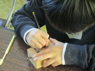 6年生が落款づくりを実施                                        11月22日(火)、今年も6年生がものづくり体験教室で落款づくりを体験しました。栃木市印章彫刻技師会の4名の方を講師として、今年は赤麻公民館で行いました。講師の方の説明を聞いてから実際の製作に入りました。石に自分の名前の漢字のうち、自分で決めた一文字(篆書体)を彫りました。石を彫るのは難しそうでしたが、6年生の子ど もたちは講師の方々のアドバイスをよく聞いて、集中して製作に取り組み、全員完成させることができました。子どもたちからは「はんこの作り方が分かって楽しかった」「自分だけのはんこが作れてうれしかった」「はんこ作りの難しさが分かった」等の感想が聞かれました。