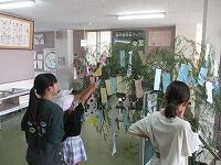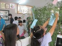 熱中症を避けるため、本日の昼休みは校庭では遊べませんでしたが、その分、昇降口は、短冊に自分の願いを書いて、竹に付けて楽しむ子供たちであふれました!