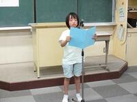 本日で1学期が無事終了しました。暑さ対策のため、音楽室で行っている終業式を各教室に配信し、オンラインで実施しました。始めに表彰を行い、次に校長先生の話、児童代表の作文発表がありました。堂々と発表することができ、立派でした。そして、校歌斉唱。校舎中に歌声が響きました。
