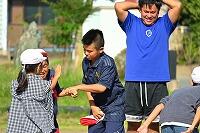 試しに、ピッチャーが転がしたボールを蹴らせてもらう子もいました。