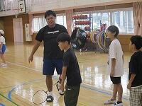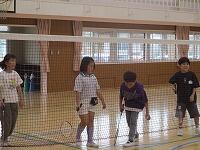ラケットを持って、実際に打ってみました。なかなか当たらないと、上級生が丁寧に教えてくれました。