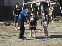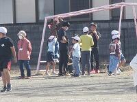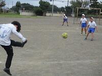 試しに、ピッチャーが転がしたボールを蹴らせてもらう子もいました。