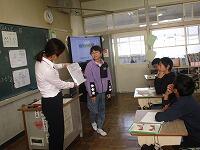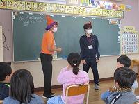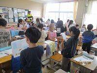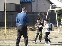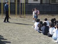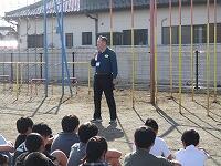 その後、避難していた児童に、登下校中に不審者に声を掛けられた場合の対応の仕方について、1年生~4年生までの代表の児童の実演を通して、学ばせていただきました。