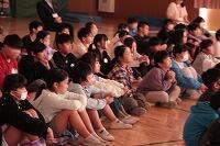 全校生が体育館に集まり、図書委員が運営し、鑑賞しました。
