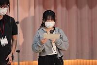 図書委員全員がステージ上で、各自のおすすめの本を紹介したり、本から考えたクイズを出題したりしました。クイズの答えは全校生で考え、正解が伝えられる度に、歓声があがり、楽しい集会となりました。