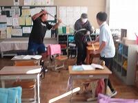 不審者が、3年生の教室に入ってきたという想定で行いました。