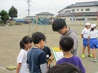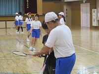 ラケットを持って、実際に打ってみました。なかなか当たらないと、上級生が丁寧に教えてくれました。