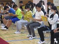 その後、全校生が体育館に集まり、図書委員会による図書集会がありました。