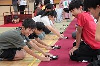 室内ゲームでは、今日は、昔の日本の遊びで、けん玉やベーゴマ、だるま落としなどを楽しんでいました。3年生も試しにやって楽しみました。