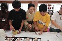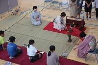 子供たちは、ボランティアの皆様に教えていただきながら、お茶を点てたり、和菓子と抹茶をいただいたりしながら、おもてなしの心や「侘び寂び」など、日本の伝統文化を学ばせていただきました。お抹茶の苦みや、菊の花の美しい和菓子の甘さも、じっくり味わいました。