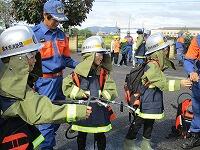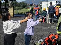 地域にある消防団の皆様から、地域を守るための工夫や努力など消防団の活動について体験しながら学ばせていただきました。