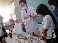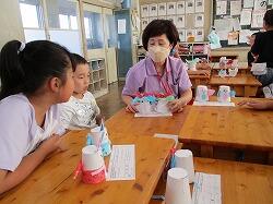 薬と飲み物の組み合わせによって、実際に体の中ではどういう現象がおきているのか、「実験」を交えてご講話いただきました。初めて学ぶ内容に、6年生もとても興味深く聴いていました。
