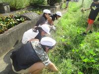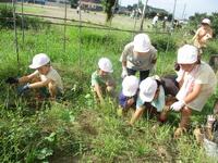 夏の間にぐんぐん伸びた雑草を、みんなで頑張って抜いていきます。
