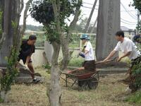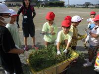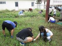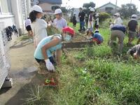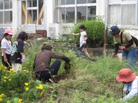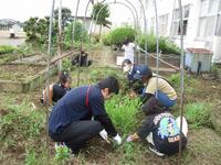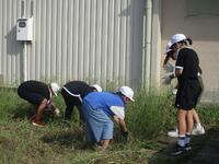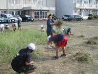 事前にボランティアを呼び掛けたところ、保護者の方も除草に参加してくださいました。