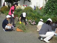 低学年のさつまいも畑や花壇周りの雑草も刈り取っていただき、季節の花々がより映えるようになりました。