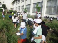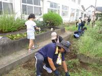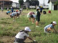 朝の活動の時間に、全校除草を行いました。朝から9月とは思えない強い日差しが降り注いでいましたが、子供たちは水筒を準備して、こまめに水分補給しながら活動しました。