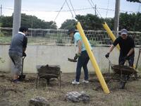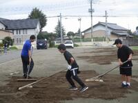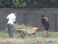 壁際にたまった土をグラウンドに戻して整地していただきました。