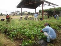 運動会の児童の応援席になる辺りや、東の壁近く、低学年のサツマイモ畑などを除草していただきました。