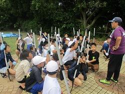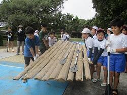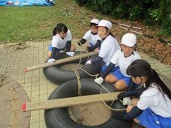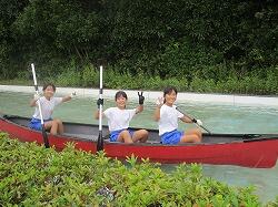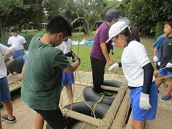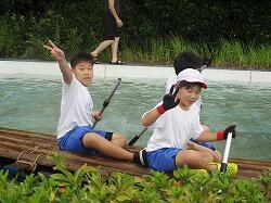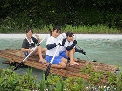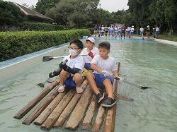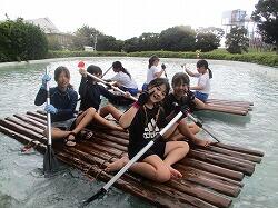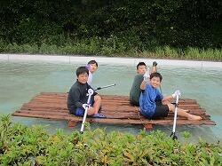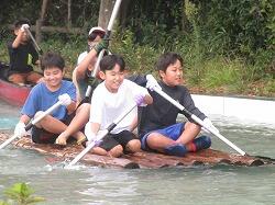 説明を聞いた後、いかだを作り、みんなで息を合わせてこぎ、カヌーも含めて楽しみました。