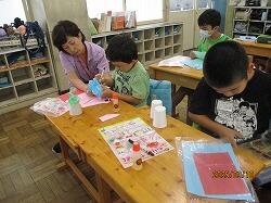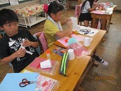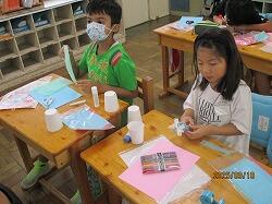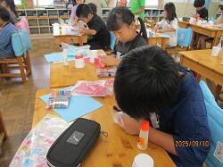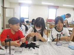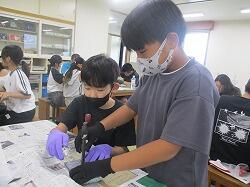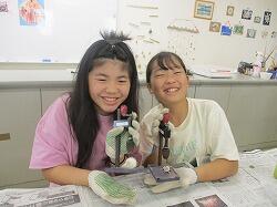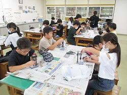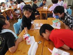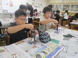 かたくてなかなか穴が空けられず、友達と協力しながら取り組みました。